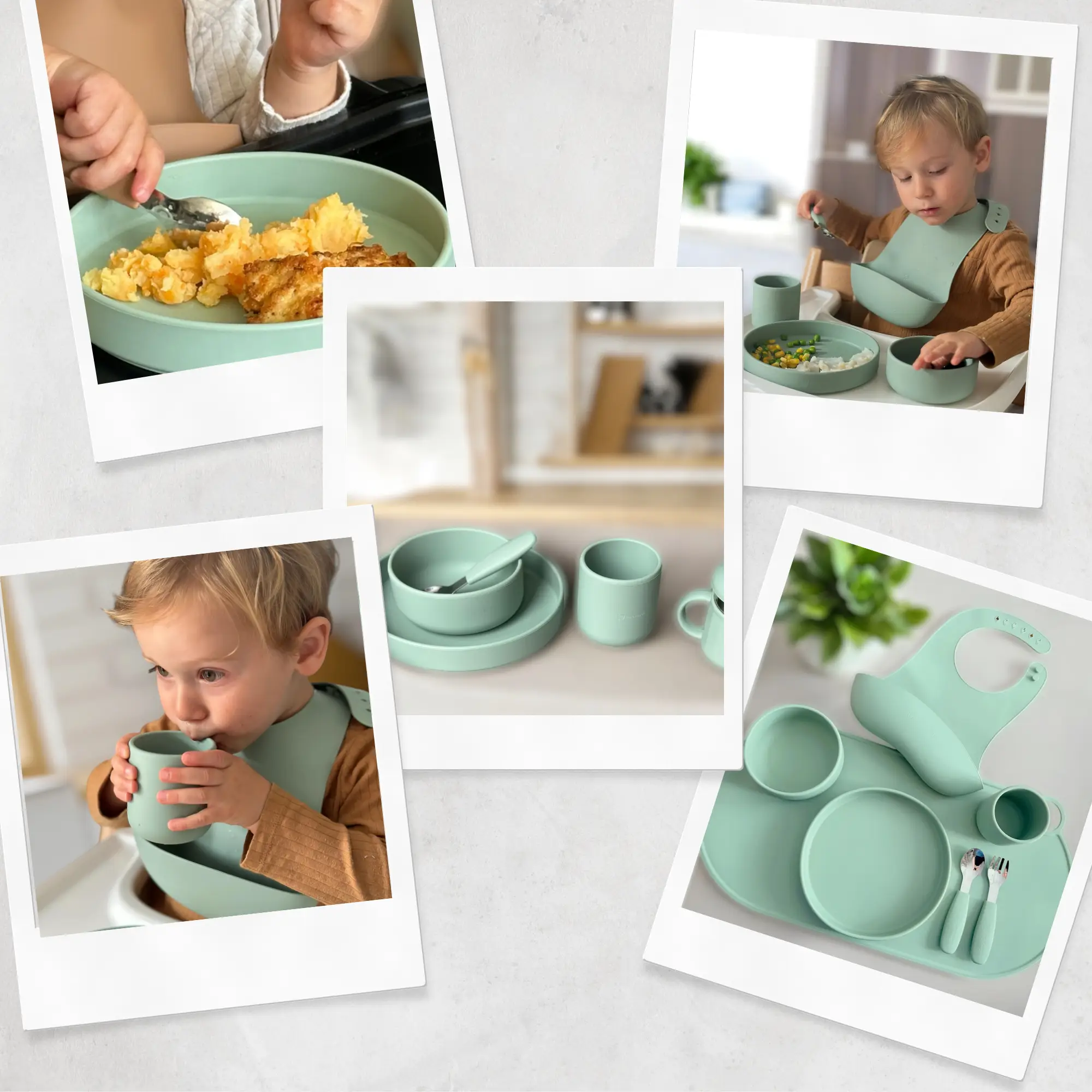 • Stylish Design: Available in calming sage green and adorable pink, this set adds a touch of modern, minimalist style to your mealtime routine.
